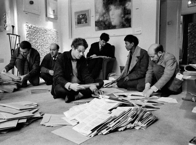 Initially, enthusiasts and intellectuals Guy Brett, Paul Keeler, Gustav Metzger, Marcello Salvadori, and David Medalla founded the newsletter Signals Newsbulletin. It took its name from a series of kinetic sculptures by the Greek artist Takis. Exploring movement, energy, and the interplay of creativity with science, the artworks embodied the concept of the bulletin.