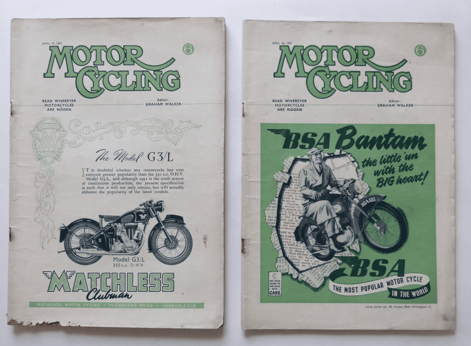 The Temple Press publishing house founded Motor Cycling magazine in 1902. Publication ceased after just a few months but was successfully relaunched in 1909. At that time, The Motor Cycle magazine had already firmly established itself in the motorcycle periodical market, having been published for six years and cultivated a strong audience. The two publications soon became rivals due to their differing approaches to covering topical events.