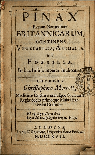 Одной из известнейших работ ученого является Pinax Rerum Naturalium Britannicarum. Она относится к периоду, когда Кристофер Меррет занимался научной деятельностью в качестве естествоиспытателя. Данная работа была опубликована в 1666 году и по виду напоминает алфавитный каталог без дополнительных объяснительных комментариев, но, несмотря на это, содержит первые списки британских птиц и бабочек. По этой причине она и является такой уникальной и ценной.