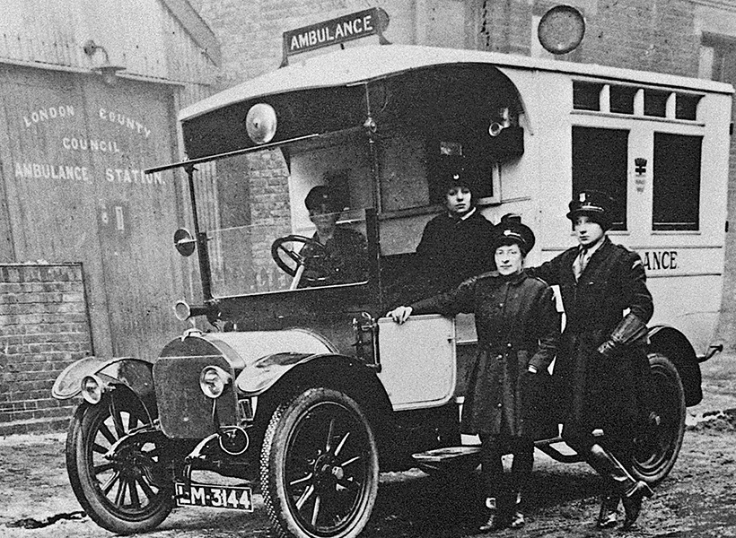 Перший автомобіль, що перевозив хворих, можна було побачити на вулицях Лондона у 1904 році. Це був певний прорив у розвитку медичної справи, адже тепер процес транспортування став значно швидшим. Цікавим також постає той факт, що алгоритми дій швидкої допомоги були розроблені виключно при інфекційних захворюваннях, але з моменту отримання медичними службами автомобілів працівники надавали невідкладну допомогу навіть в екстрених випадках, наприклад, таких як аварії. З цієї причини у 1909 році уряд дозволив створювати окремі служби екстреної швидкої допомоги. Але перші такі бригади були сформовані лише у 1915 році. У цей період відбулося ще одне досить незвичне для того часу явище. Керувати машиною швидкої допомоги отримали змогу жінки. Звичайно це приголомшило багатьох мешканців Лондона, але цього вимагали історичні події. Багатьох чоловіків забрала Перша світова війна і представниці жіночої статі виконували велику кількість специфічних обов’язків та важкої роботи. У місті навіть існували окремі «жіночі» бригади.